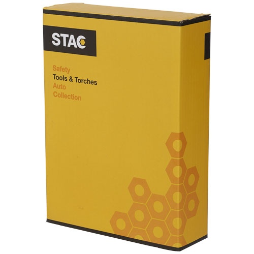 OPIS: 28-elementowy zestaw narzędzi. Ten 28-elementowy zestaw narzędzi składa się ze śrubokręta z 9 końcówkami (PH1, PH2, PZ1, PZ2, SL5, SL6, T10, T15, T20), przedłużki, adaptera do nasadek, 8 nasadek (5 mm, 6 mm, 7 mm, 8 mm, 9 mm, 10 mm, 11 mm, 12 mm), scyzoryk, długie szczypce, magnetyczne szczypce teleskopowe, 2 klucze imbusowe (4 mm, 5 mm), 2 precyzyjne śrubokręty (PH2, SL2) oraz suwmiarka. Zapakowany w czarne pudełko upominkowe STAC. Stal oraz plastik ABS.