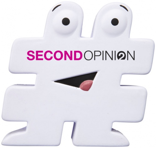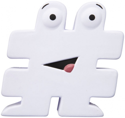 OPIS: Antystres HashTag. Antystres HashTag pełni także funkcję owijaka do kabli. Ze względu na konstrukcję form i proces produkcji antystresy mogą różnić się gęstością, kolorem, rozmiarem, wagą i precyzyjnością wykonania nadruku. Nadruk może z czasem pękać. Bez przejść tonalnych. Poliuretan.