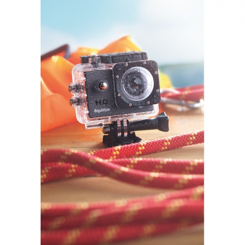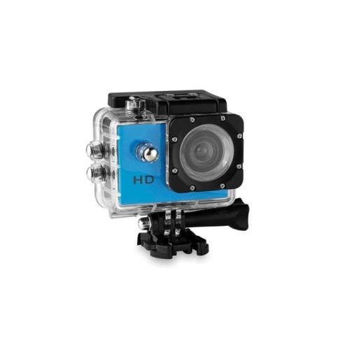OPIS: Aparat cyfrowy. Rozdzielczość 720P, 4-krotny zoom cyfrowy, kąt widzenia 120°, ekran dotykowy o śr.2 cali. Wodoszczelna obudowa do 10m, akcesoria do mocowania do roweru lub kasku, idealne do sportów ekstremalnych. 1.3M Pixel CMOS. Karta micro-SD nie dołączona. Baterie w zestawie.