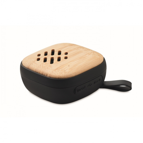 OPIS: Głośnik 5.0 bezprzewodowy z bambusem z przodu, ABS z tyłu, z silikonowym uchwytem. 1 . Czas odtwarzania ok. 2h. Zalecamy podłączyć smartfon lub urządzenie mobilne bezprzewodowo i zacznij odtwarzać swoją ulubioną muzykę. Dzięki akumulatorowi Li-Ion o pojemności 400 mAh jego przybliżony czas odtwarzania po pełnym naładowaniu wynosi 2 godziny. Dane wyjściowe: 3W, 4 Ohm. Bambus jest produktem naturalnym, mogą występować niewielkie różnice w kolorze i rozmiarze poszczególnych elementów, co może mieć wpływ na ostateczny efekt dekoracyjny.