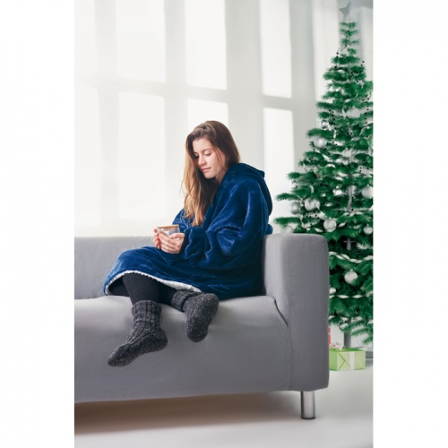 OPIS: Domowa bluza - ocieplacz z polaru 220 gr/m2, wewnętrzna warstwa wykończona materiałem Sherpa o gramaturze 230 gr/m2. 1 uniwersalny rozmiar. Zapakowana wstążką z etykietą do nadruku.