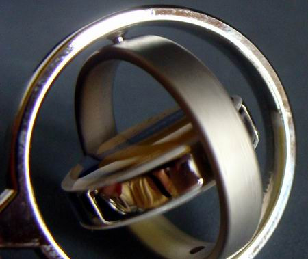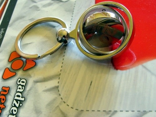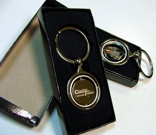 OPIS: Brelok z obracanym elementem w środku, w czarnym pudełku.