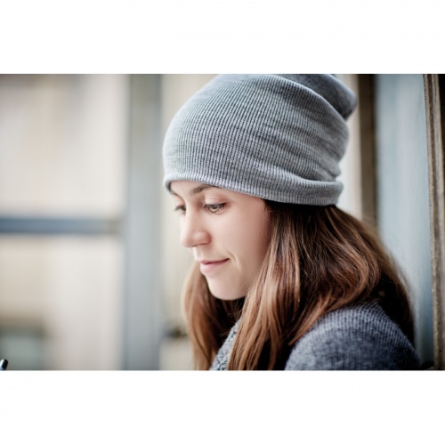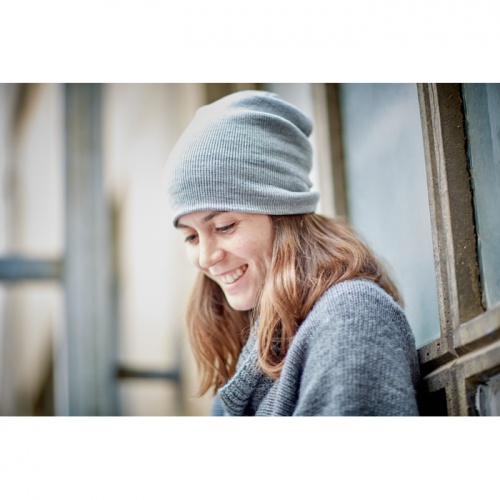OPIS: Dzianinowa czapka unisex z miękkiego, rozciągliwego poliestru RPET.