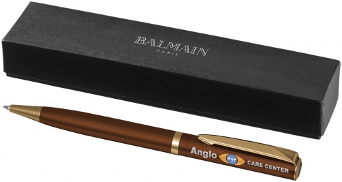 OPIS: Długopis Laka. Długopis dostępny w kolorach Night Black, Cobalt Blue, Chacolate Brown ze złotym wykończeniem. Laka. Zawiera wysokiej jakości czarny wkład. Zapakowany w pudełko upominkowe Balmain. Wzór zastrzeżony. Metal.