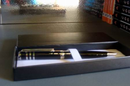 OPIS: Przekręcany, metalowy długopis, błyszczące lakierowane wykończenie. Kartonowe ozdobne pudełko. Czarny wkład.