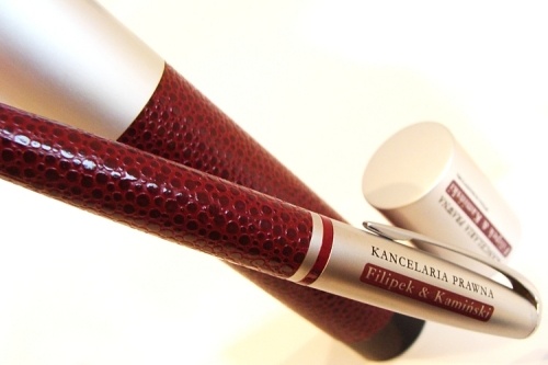OPIS: Długopis, połączenie metalu i skóry PU, w aluminiowej tubie. Czarny wkład.