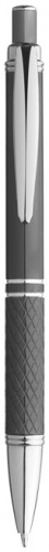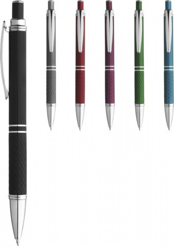 OPIS: Elegancki długopis z mechanizmem automatycznym oraz uchwytem. Na korpusie posiada delikatne przetłoczenia w formie siateczki tuż nad końcówka do pisania. Jego smukły korpus z błyszczącymi dodatkami w formie 2 pierścieniu, końcówki oraz klipsa dodaje elegancji w klasycznej formie. Aluminium.