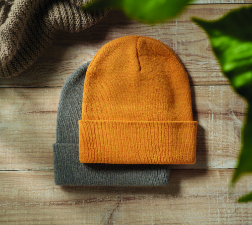 OPIS: Dzianinowa czapka unisex z miękkiego, rozciągliwego poliestru (64%) i akrylu (36%) z wywijanym mankietem. Rozciągliwy, uniwersalny krój.