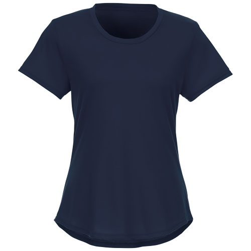OPIS: Jade - koszulka damska z recyklingu z krótkim rękawem. Przyjazna dla środowiska odzież promocyjna.Głęboki dekolt.Szwy boczne.Przedłużany tył.Taśma wzmacniająca od ramienia do ramienia.Podwójny scieg. Dżersej składający się w 100% z poliestru pochodzącego z recyklingu. 160 g/m².