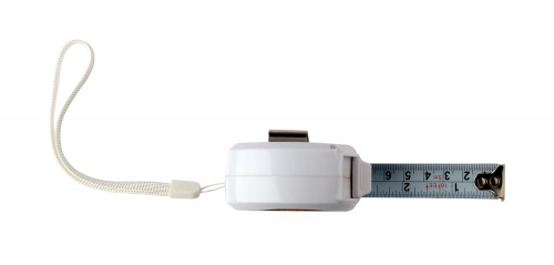 OPIS: Miarka z plastiku i bambusa z funkcją blokady, metalowym klipem i paskiem na rękę, 5 m.