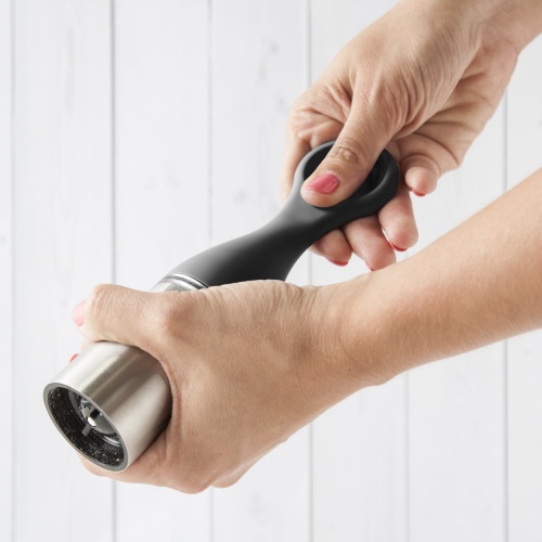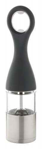 OPIS: Manualny młynek do soli i pieprzu z otwieraczem. Obudowa ze stali nierdzewnej.