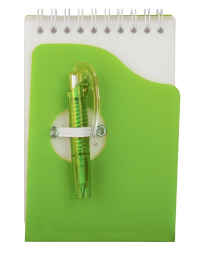 OPIS: Notatnik na spirali , 70 stron w plastikowej okładce z długopisem.