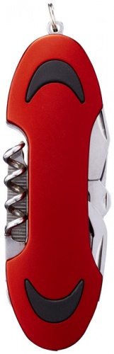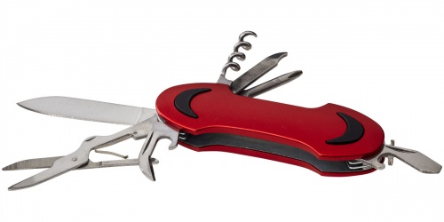 OPIS: Nóż kieszonkowy Ranger. Nóż kieszonkowy z ostrzem, nożyczkami, otwieraczem do wina i kapsli, śrubokrętem typu Philips, pilnikiem do paznokci oraz płaskim śrubokrętem. W zestawie kółko do kluczy. Aluminium.