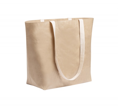 OPIS: Torba na zakupy z laminowanego papieru z długimi bawełnianymi rączkami.