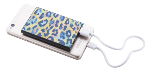 OPIS: Plastikowy powerbank w kształcie karty kredytowej o poj. 2000mAh z przyssawkami. Zestaw zawiera kabel microUSB.