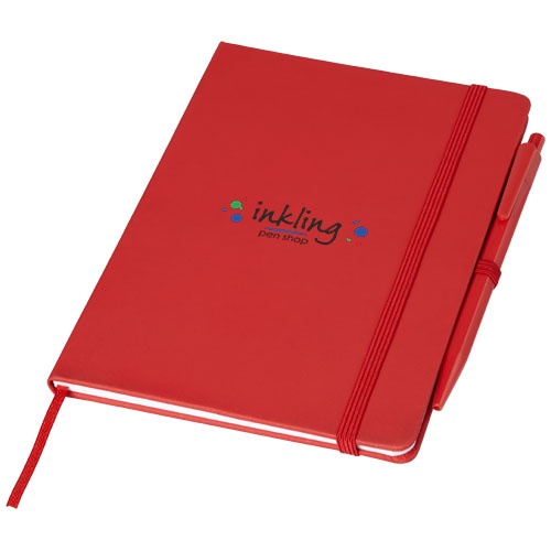 OPIS: Średniej wielkości notatnik Prime z długopisem. Notatnik w twardej okładce, w tym długopis z elastycznym zamknięciem dopasowanym kolorystycznie, zakładka tasiemkowa i pętla na pióro. Posiada 50 białych arkuszy w linie. Dopasowany kolorystycznie długopis z czarnym wkładem atramentowym. PU.