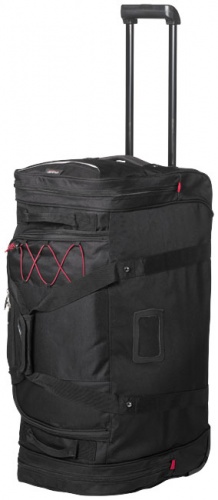 OPIS: Torba na kółkach Proton. Komora główna zapinana na zamek w kształcie litery U. Górna przednia kieszeń na multimedia z podściółką z nyleksu. Duża, przednia kieszeń zapinana na zamek błyskawiczny zawiera wyjmowany organizer Tech Trap i organizer z kieszonkami. Dwie duże kieszenie z klinami oraz rozszerzona, wewnętrzna kieszeń na buty. Dodatkowa zewnętrzna kieszeń na zamek. Elastyczny sznur do przymocowywania elementów do bagażu. Okienko z etykietą na dane adresowe z tyłu. Uchwyt teleskopowy i kółka ułożone w jednej linii oraz nakładki chroniące narożniki. Formowany uchwyt pokryty neoprenem, na górze dwa parciane uchwyty z wygodną owijką. Podszewka, zamki i elementy metalowe Elleven™. Nylon Dobby i scuba.