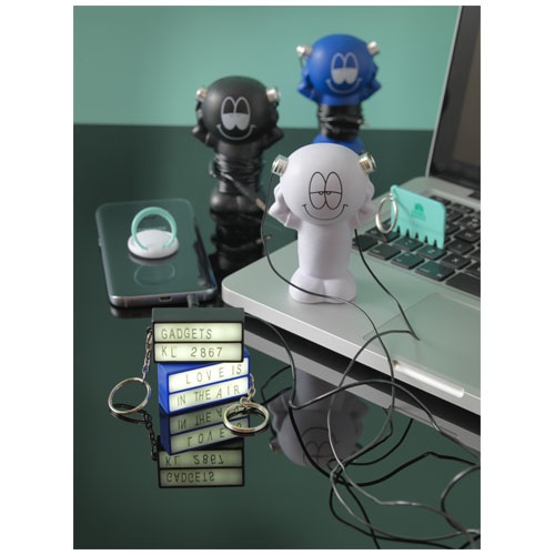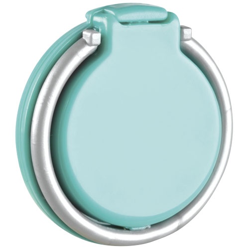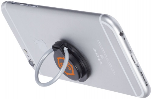 OPIS: Uchwyt na telefon. Uchwyt na telefon. Uchwyt można podnieść do góry w celu użycia jako stojaka lub do zabezpieczenia smartfona podczas trzymania go. Samoprzylepny materiał mocuje się pewnie do tyłu smartfona. Podstawa pierścienia może być obracana dla optymalnego pozycjonowania. Tworzywo ABS. Plastik ABS.