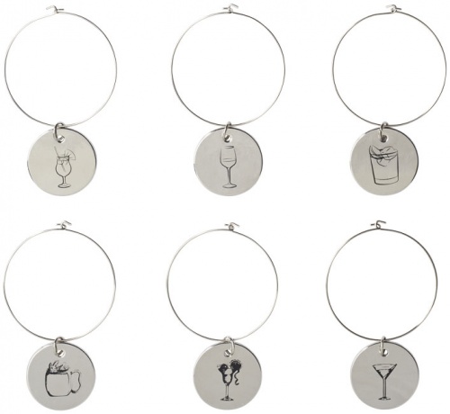 OPIS: Zawieszki do drinków Marla. Zidentyfikuj swojego drinka i spraw, by wyróżnił się na tle innych. Ten 7-elementowy zestaw składa się z sześciu zawieszek i futerału. Duży pierścień pasuje na większość szklanek i butelek. Całość zapakowana jest w pudełko upominkowe Avenue. Metal.