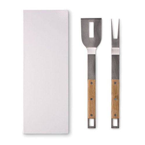 OPIS: Zestaw 2 narzędzi do grilla, wykonanych ze stali nierdzewnej. Zamknięty w pudełku w kształcie książki.