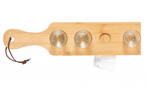 OPIS: 4-częściowy zestaw kieliszków z bambusową tacą, 30 ml.