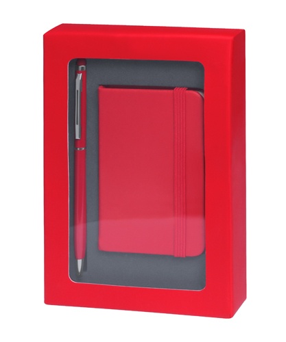 OPIS: Zestaw notatnik 80 kartkowy (kartki gładkie) i aluminiowy długopis z końcówką do ekranów dotykowych typu touch pen w pasującym kolorystycznie pudełku prezentowym.