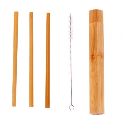 OPIS: Zestaw składający się z 3 słomek z litego bambusa i metalowego czyścika w bambusowym pudełku. Części bambusowe są biodegradowalne, metalowy czyścik może zostać poddany recyklingowi.