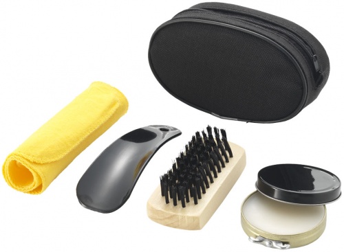 OPIS: Zestawy do konserwacji obuwia Hammond. Zestaw do butów zawiera: bezbarwna pasta do butów, łyżka do butów, szczotka do obuwia oraz szmatka do polerowania. Całość zapakowana w etui z poliestru 70D.